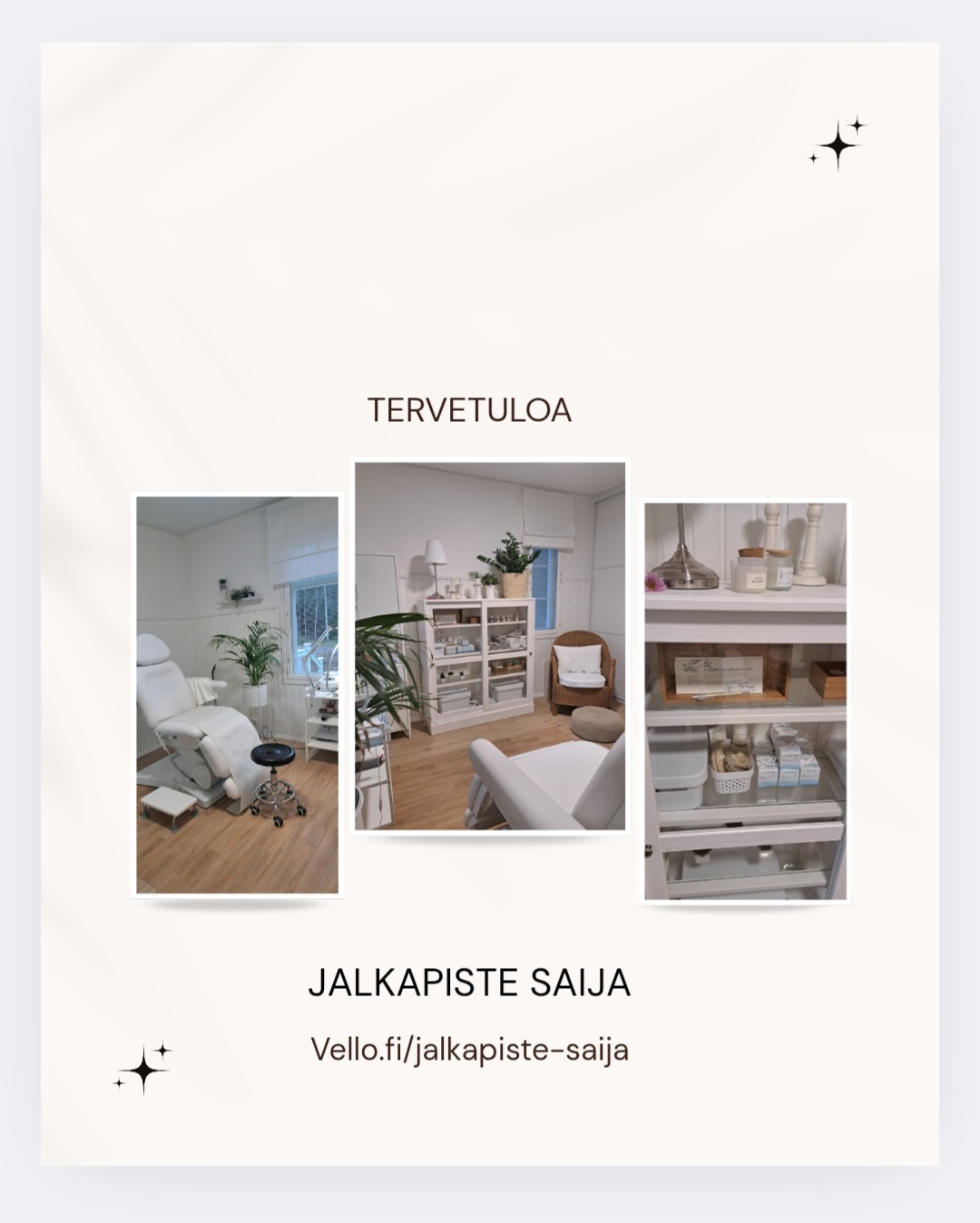 Lämpimästi tervetuloa varaamaan aikoja hoitolaani. Toteutan luotettavaa ja ammattitaitoista jalkojenhoitoa hoitolassa, asiakkaan kotona sekä palvelutaloissa.